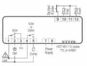 Abhängig von der Ausführung können zu drei Fühler NTC oder PTC gleichzeitig angeschlossen werden. Je nach Konfiguration für Raumtemperatur, Abtauung, usw. Für den dritten Fühler wird der digitale Eingang umkonfiguriert (abh. von der Ausführung) und der 4. Fühler (abh. von der Ausführung) wird über den HOT-KEY Anschluss verdrahtet. Für Kondensator-Temperatur Alarm.